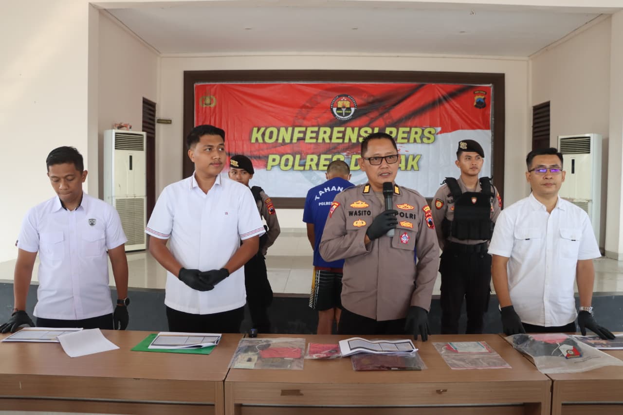 Keberhasilan mengungkap kasus berdarah ini disampaikan dalam konferensi pers yang digelar oleh Kasat Reskrim Polres Demak, Iptu Anggah Mardwi Pitriyono, di Mapolres Demak, Rabu (15/10) siang